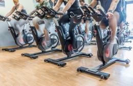 Intervallmäßig aufgebautes Ausdauertraining auf speziellen Standrädern zu Musik unter Anleitung eines Trainers.